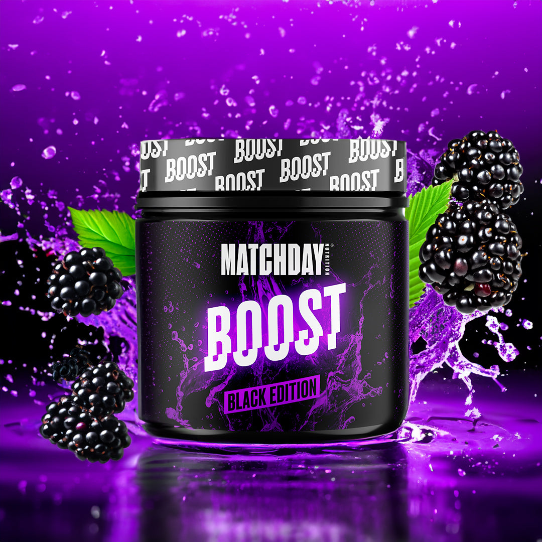Die BOOST Black Edition enthält zusätzlich 200mg Koffein pro Portion. Die Black Edition eignet sich also perfekt, wenn du einen extra Kick vor dem Training oder Spiel brauchst, weil du dich müde oder unkonzentriert fühlst.